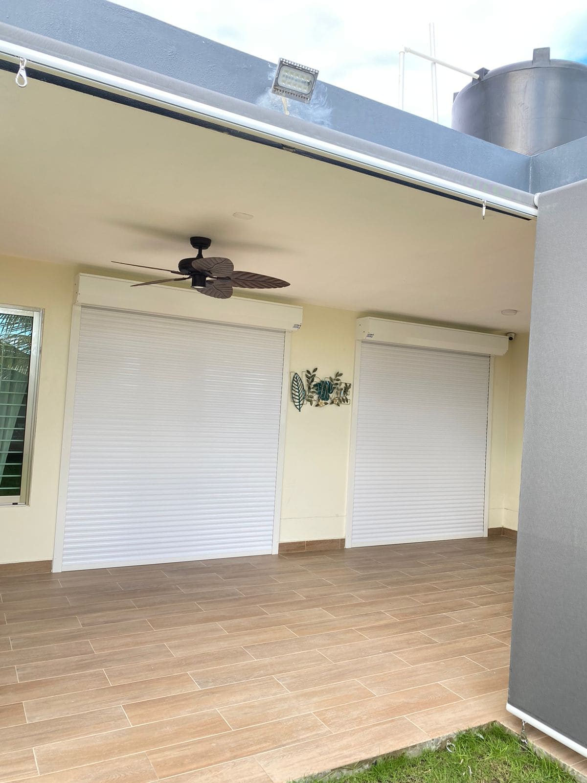 Este tipo de shutter cuenta con un motor eléctrico que permite abrir y cerrar de forma cómoda mediante control remoto, interruptor o sistema inteligente, y a la vez incorpora un mecanismo manual (manivela o llave) que permite accionarlo cuando no hay electricidad.